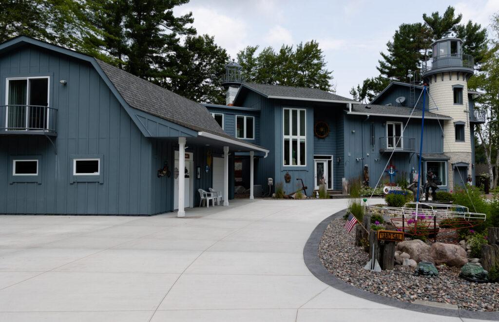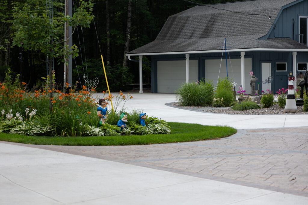 This lighthouse-themed property in Minocqua needed a driveway makeover to enhance the home's curb appeal. The homeowners chose ready-mix concrete to create a unique design using textured and colored concrete and stamping tools.