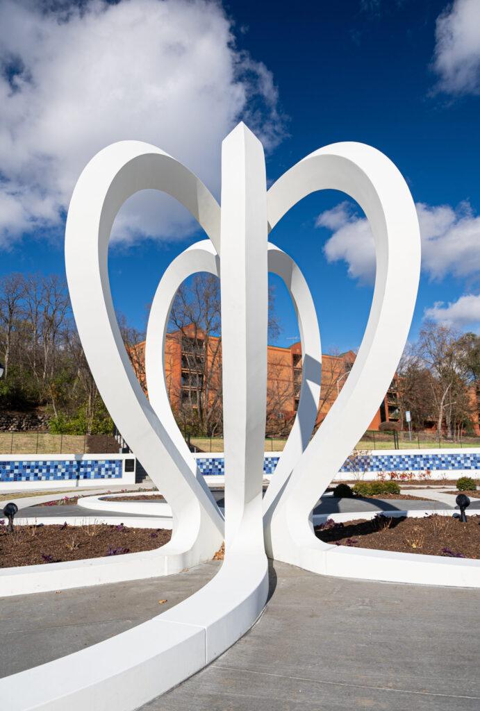 The intricate design of the heart-shaped memorial posed an interesting challenge for concrete placement. A high-range additive was introduced into the 4,000-psi mix to allow pumpability and placement ability to guarantee a smooth finish.