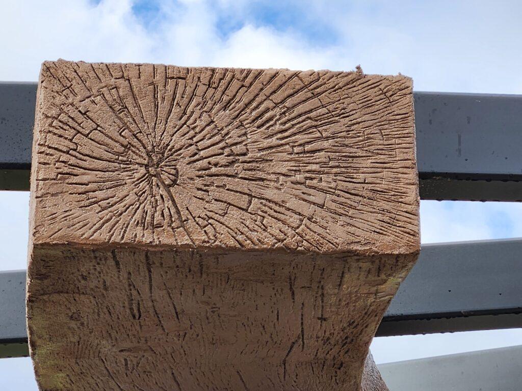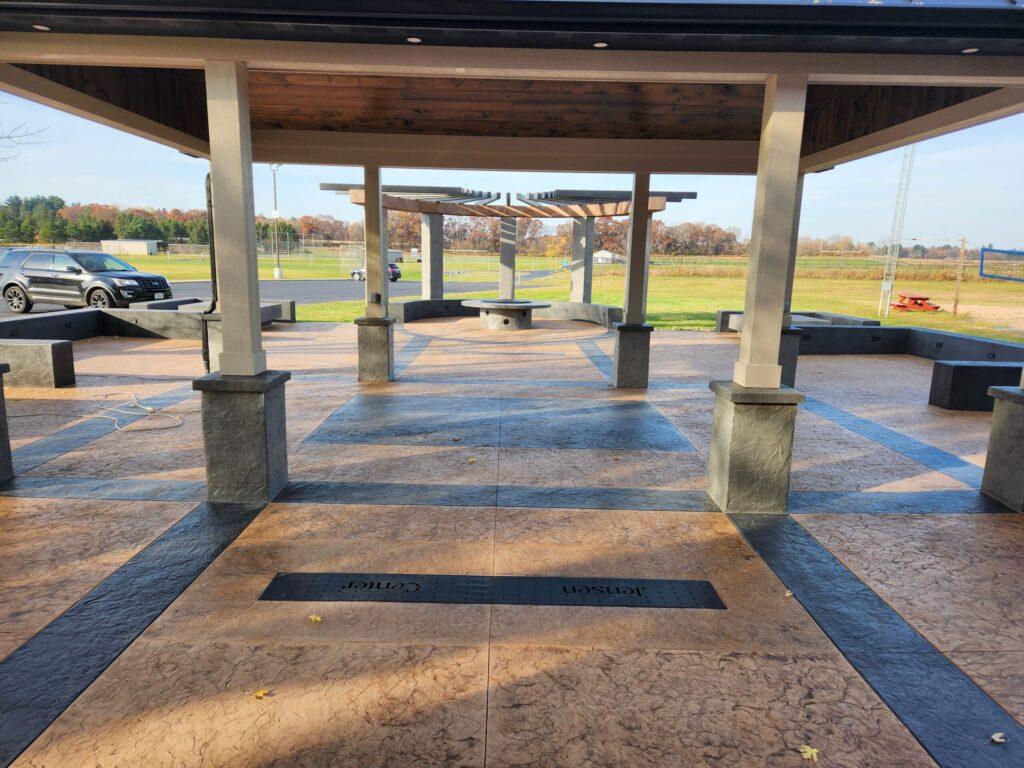 Colored, stamped ready-mixed concrete was used in panels, walkways, walls, seat walls, pavilion column bases, pergola columns, beams, and the pergola fire table to create a space that would increase the appeal and function of the Jensen Community Center - a place where the community would gravitate to socialize and connect.